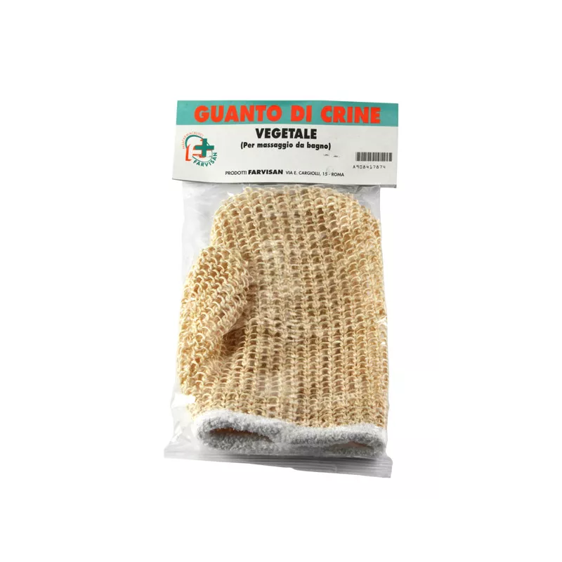 Guanto prodotto utilizzando fibra naturale al 100%: la fibra di sisal si ottiene pressando le foglie polpose dell'agave sisalana (Aloe family). Le foglie pressate vengono essiccate, cardate e attorcigliate per ottenere il prodotto finale.