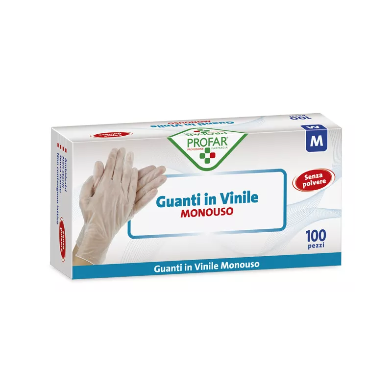 I guanti in vinile profar sono guanti monouso comodi, e resistenti, realizzati con materie prime sintetiche, soprattutto pvc (poli vinyl cloruro). L'aggiunta di plasticizzanti gli conferisce malleabilità, elasticità e morbidezza. I guanti in vinile senza polvere sono utilizzati soprattutto nelle esplorazioni, esaminazioni e medicazioni anche in ambito ambulatoriale, per evitare il rischio di contaminazioni e infezioni, sono ideali per attività in cui non è richiesta la sterilità; sono indicati anche nel lavoro in laboratori, per terapia diagnostica e in ogni caso in cui sia utile proteggersi dal contatto con agenti biologici e sostanze chimiche.