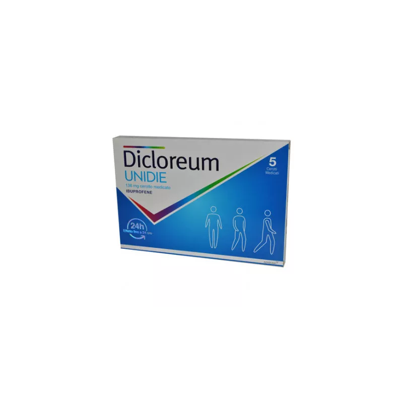 Dicloreum Unidie è un cerotto medicato contenente come principio attivo ibuprofene, un antinfiammatorio non steroideo (FANS) con una azione antiinfiammatoria e analgesica, che viene rilasciato per via transdermica.