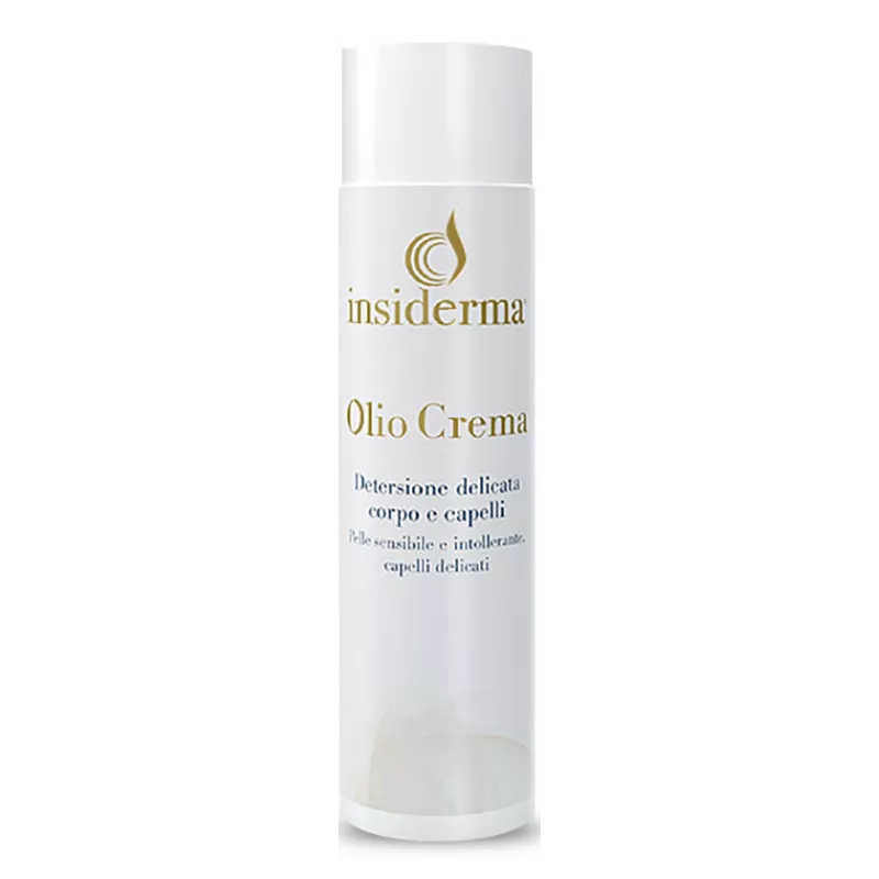 Insiderma Olio Crema è un detergente oleato cremoso delicato ed affine alla pelle a base di oli naturali, trealosio, vitamina PP, ceramidi vegetali e vitamina E. Prodotto appositamente studiato per il lavaggio di tutto il corpo in caso di pelle sensibile e delicata e capelli secchi e sfibrati. Dopo l’impiego lascia cute e capelli morbidi e idratati grazie all’impiego di sostanze emollienti e nutrienti. Deterge la pelle, anche la più sensibile, delicatamente, rispettandone l’equilibrio fisiologico e conferendole protezione e benessere.