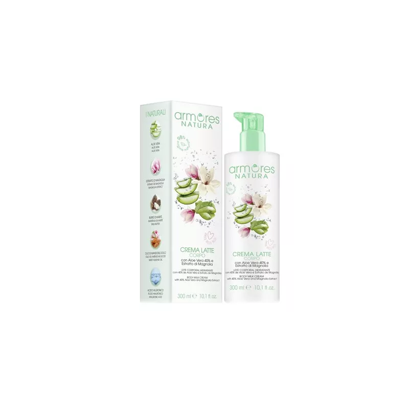 Latte corpo contenente una elevata quantità di aloe vera (40%) ad azione idratante e lenitiva, si assorbe con un delicato massaggio senza ungere. Formulata con componenti vegetali selezionati, priva di paraffina e di oli minerali, si prende quotidianamente cura della pelle del corpo lasciando una piacevole sensazione di freschezza. L'aloe vera, contenuta in elevata quantità (40%) idrata, tonifica, lenisce e protegge la pelle del corpo.
