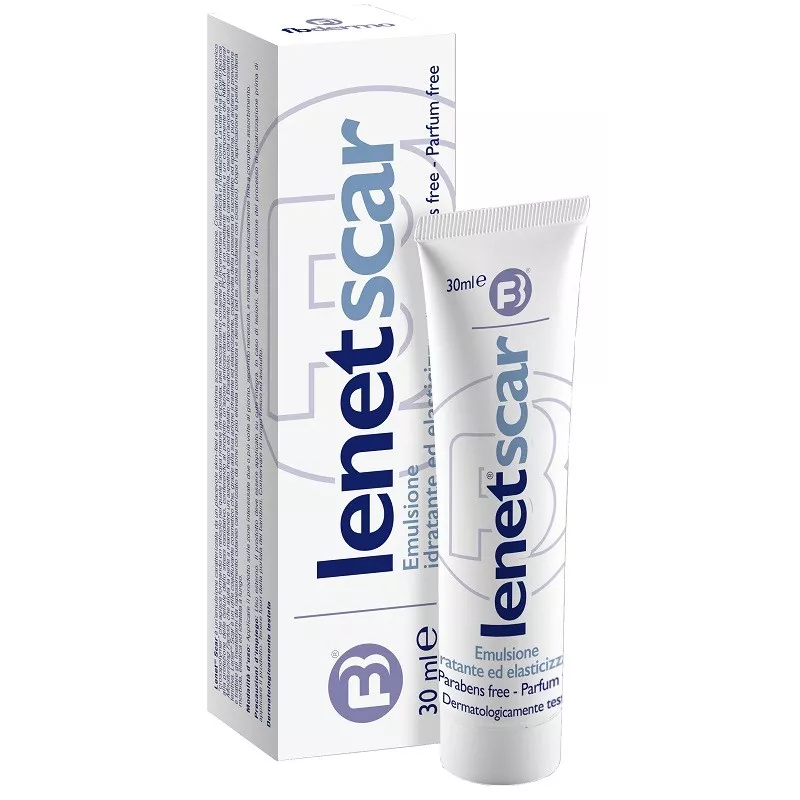 Emulsione caratterizzata da un piacevole skin-feel e da un’ottima scorrevolezza che ne facilita l’applicazione. Contiene una particolare forma di acido ialuronico “crosspolymer” che agisce formando un reticolo nel quale l’acqua rimane intrappolata; tale meccanismo consente di incrementare l’elasticità e l’idratazione. La vitamina E contribuisce alla protezione delle cellule dallo stress ossidativo, conferendo al prodotto un’azione antiossidante. Il sodium PCA è un umettante naturale e un componente del NMF (Natural Moisturizing Factor), che aiuta la pelle a mantenere un aspetto fresco ed idratato. Il bisabololo, componente principale dell’estratto di camomilla, esercita un’azione disarrossante e lenitiva. Lenet Scar è un utile coadiuvante cosmetico che, grazie alla sua azione idratante ed elasticizzante, coadiuvata dalla presenza di sucralfato ed eparina, può aiutare a prevenire e trattare gli inestetismi da ispessimento cutaneo caratterizzato da zone con più elevata consistenza e densità (ad es. zone cutanee con cicatrici). Dopo l’applicazione la pelle risulterà morbida, elastica ed idratata a lungo.
