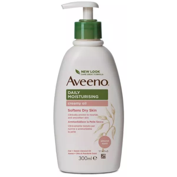Questa formula ricca e non grassa con olio di mandorle dolci idrata per 24 ore per aiutare a proteggere e nutrire la pelle secca. Aveeno daily moisturising creamy oil con avena colloidale migliora il tuo naturale equilibrio cutaneo per una pelle più elastica e dall'aspetto sano sin dal primo giorno. Con olio di mandorle dolci, formula ad elevata tollerabilità. Adatto per pelli sensibili.