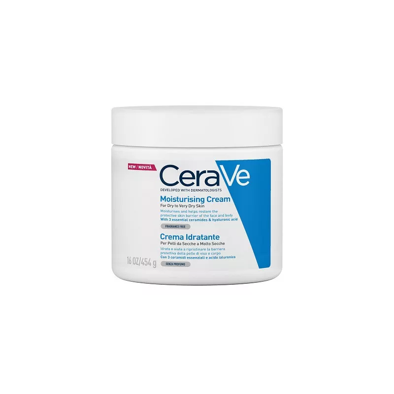 Crema idratante per pelli da secche a molto secche. Questa formula ricca, contiene 3 ceramidi essenziali e acido ialuronico per idratare e aiutare a ripristinare la barriera protettiva della pelle.