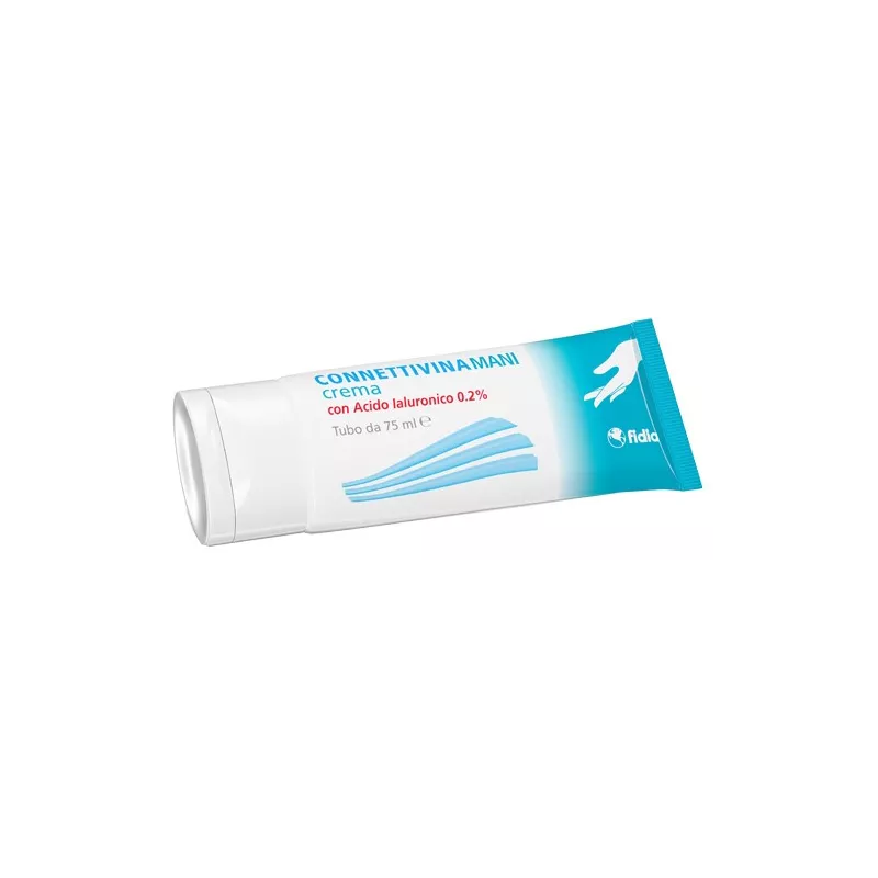 Preparazione con acido ialuronico (frazione Hyalastine), prodotto e puri cato da Fidia farmaceutici S.p.A., che idrata la pelle e favorisce il ripristino della barriera cutanea, proteggendo e donando rapido sollievo in caso di mani molto secche, arrossate, disidratate, screpolate e più in generale stressate da agenti esterni e dal freddo.