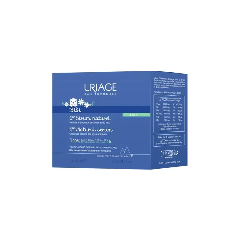 L'acqua termale di uriage dalle alpi francesi è fisiologica e 100% naturale, deterge delicatamente la zona del contorno occhi e del nasino di bebè e bambini. Con la sua concentrazione eccezionale di sali minerali e oligoelementi, ha proprietà lenitive e idratanti. Uso esterno. Non profumato.