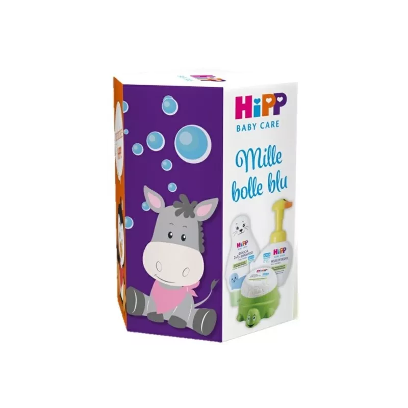 Cofanetto contenente: HiPP Mousse Detergente Paperella, HiPP Doccia Shampoo Fochetta, HiPP Crema Idratante Tartaruga.