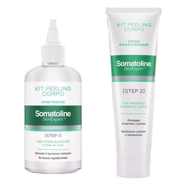 STEP 2 - CREMA RIEQUILIBRANTE: Dopo aver completato e risciacquato lo Step 1 del KIT PEELING CORPO, applicare la crema riequilibrante sulla pelle asciutta. Massaggiare delicatamente fino a completo assorbimento.