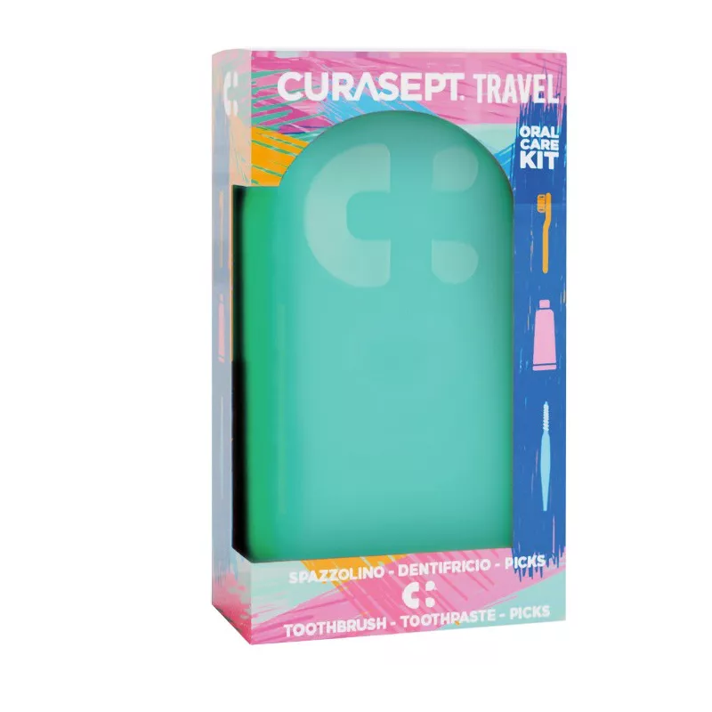 Kit contenente spazzolino, dentifricio da 20 ml, 3 curasept picks.