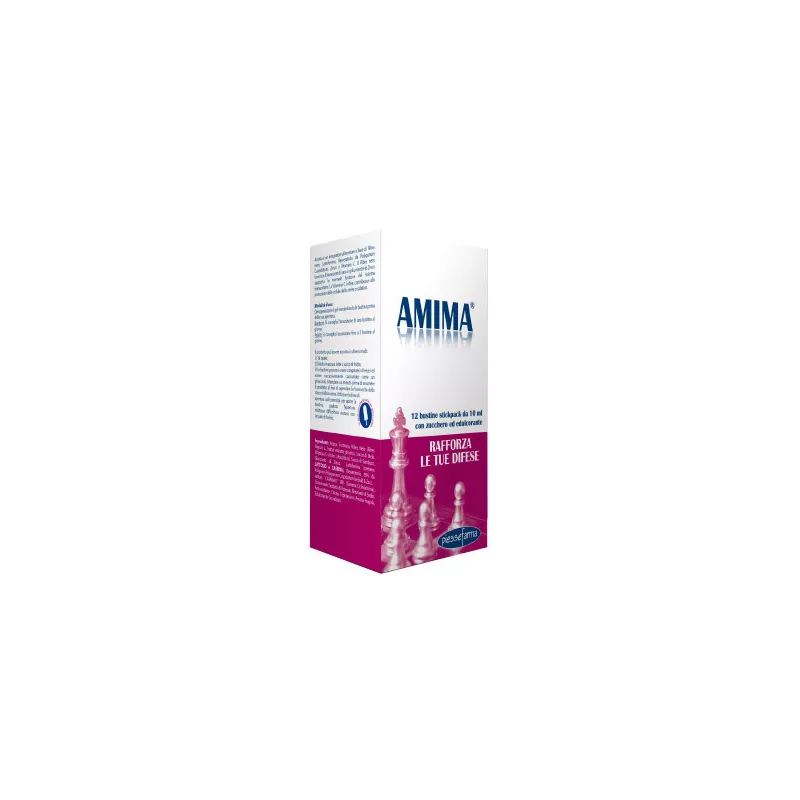 Amima è un integratore alimentare a base di ribes nero, lattoferrina, resveratrolo da polygonum cuspidatum, zinco e vitamina C. Il ribes nero favorisce il benessere di naso e gola, mentre lo zinco supporta la normale funzione del sistema immunitario. La vitamina C, infine, contribuisce alla protezione delle cellule dallo stress ossidativo.