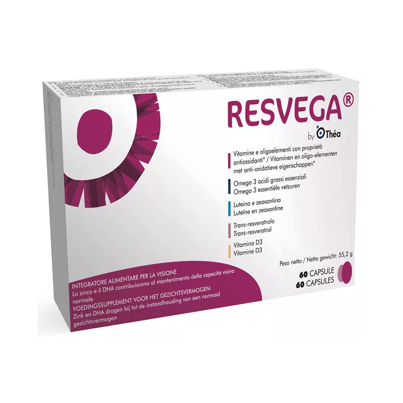 Olio di pesce (omega 3 acidi grassi essenziali), gelatina bovina, vitamina C (acido ascorbico), acqua depurata; umettanti: glicerolo, sorbitolo; emulsionante: monostearato di glicerina; trans-resveratrolo, luteina, vitamina E (DL-alfa-tocoferolo acetato); antiagglomerante: cera d'api; emulsionante: lecitina di soia; ossido di zinco, zeaxantina, rame (solfato); coloranti: ossido di ferro nero, ossido di ferro rosso; vitamina D3 (colecalciferolo).
