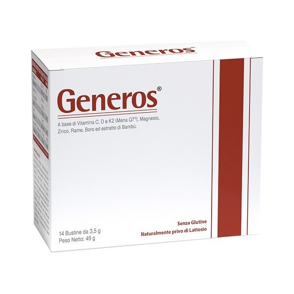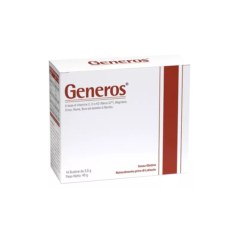 Descrizione Prodotto a base di vitamina C, D e K2 (Mena Q7), magnesio, zinco, rame, boro ed estratto di bambù utile in caso di carenza o accresciuto fabbisogno di tali elementi nutritivi. La vitamina C contribuisce alla normale formazione del collagene per la normale funzione delle cartilagini; la vitamina D contribuisce al normale assorbimento ed utilizzo di calcio e fosforo; il rame contribuisce al mantenimento del normale tessuto connettivo e del metabolismo energetico. Il magnesio, la vitamina D e la vitamina K contribuiscono al mantenimento di ossa e denti normali. Il magnesio contribuisce alla riduzione della stanchezza e dell’affaticamento, al normale metabolismo energetico, alla normale funzione muscolare e alla normale sintesi proteica. La vitamina C, lo zinco e il rame contribuiscono anche alla protezione delle cellule dallo stress ossidativo; il bambù contribuisce al benessere di unghie e capelli.