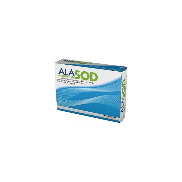 Descrizione Complemento alimentare a base di acido alfa-lipoico (ALA), estratto di melone titolato in superossidodismutasi (SOD), vitamina E e selenio. Per la presenza di vitamina E e selenio, contribuisce alla protezione delle cellule dallo stress ossidativo.