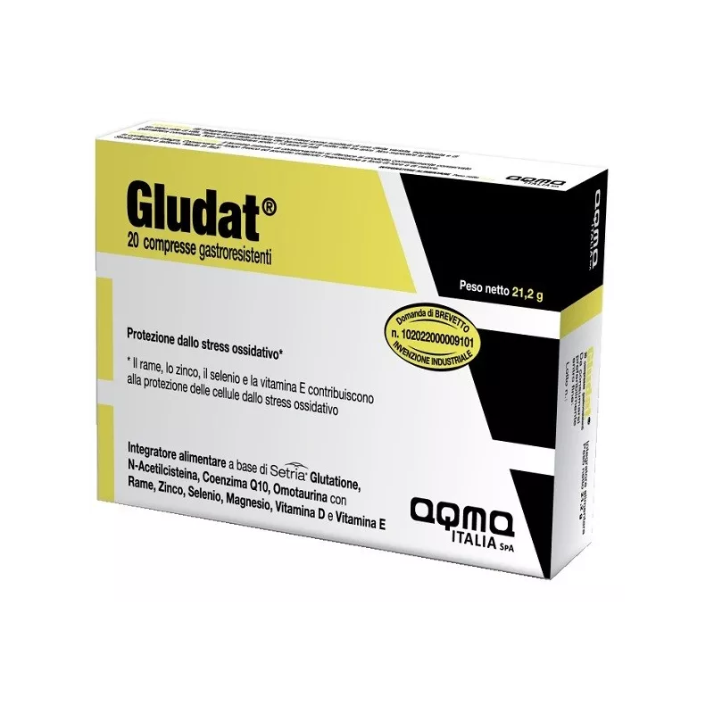 Descrizione Integratore alimentare a base di glutatione, che aumenta efficacemente i depositi corporei di glutatione, con attività antiossidante, che supporta i processi di detossificazione e il sistema immunitario. Gludat contiene rame, zinco, selenio e vitamina E che contribuiscono alla protezione delle cellule dallo stress ossidativo; magnesio che contribuisce alla riduzione della stanchezza e dell’affaticamento e all’equilibrio elettrolitico; magnesio e rame che contribuiscono al normale metabolismo energetico e al normale funzionamento del sistema nervoso. La vitamina D e il magnesio che contribuiscono al mantenimento di ossa in salute ed al mantenimento della normale funzione muscolare.
