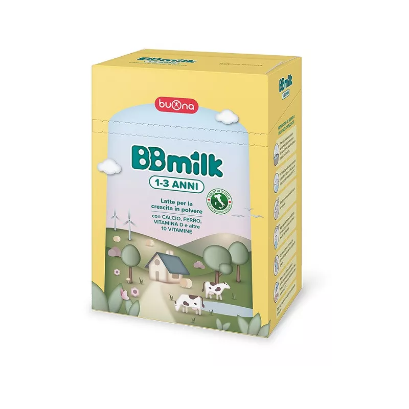 - BBmilk 1-3 anni non può essere utilizzato come unica fonte di nutrimento. Chiedere consiglio del Pediatra per l’utilizzo del latte di crescita.