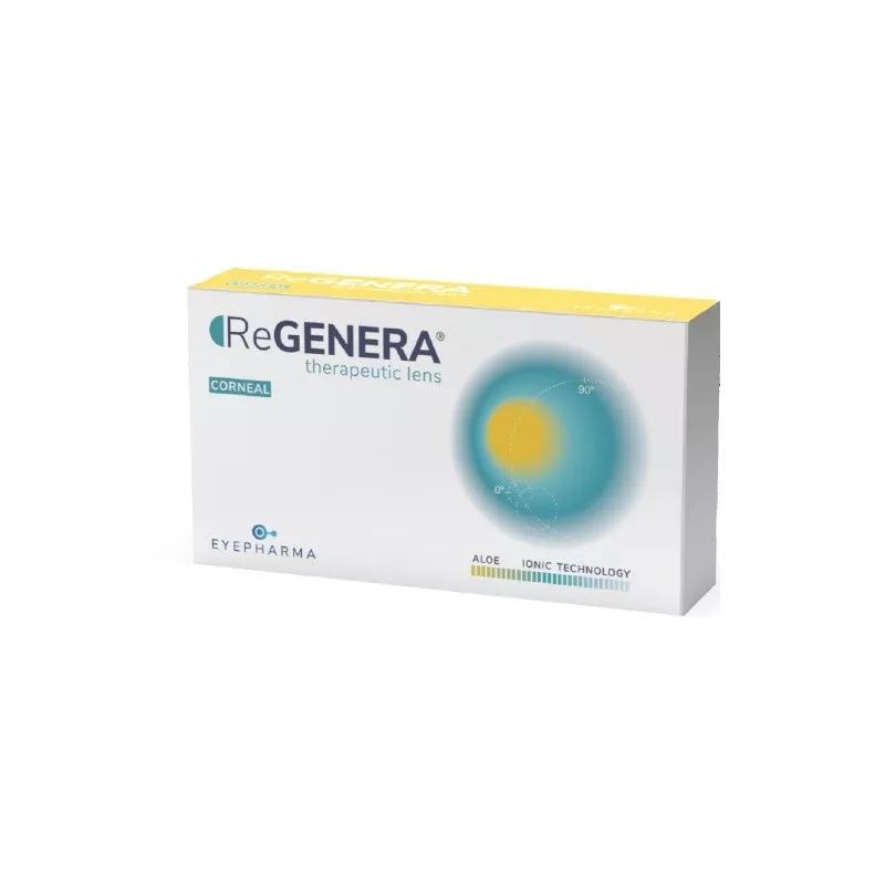 La lente a contatto terapeutica REGENERA therapeutic lens può essere utilizzata solo sotto stretta indicazione del medico e dell'ottico di fiducia. REGENERA therapeutic lens non ha una funzione refrattiva e sono stati sviluppati due modelli: REGENERA therapeutic lens CORNEALE per facilitare la riepitelizzazione corneale nel post - operatorio dell'intervento di chirurgia refrattiva o in caso di abrasioni e traumi della superficie corneale; REGENERA therapeutic lens SCLERALE come bendaggio oculare nel post-intervento o in condizioni patologiche che necessitano di una copertura limbare, per una protezione più ampia della superficie oculare. La ionicità del materiale permette una migliore interazione con il film lacrimale e un passaggio ottimale dei colliri attraverso la lente. La soluzione all'Aloe vera in cui è imbibita la lente svolge un'azione lenitiva e antinfiammatoria, oltre a favorire il processo di riepitelizzazione.