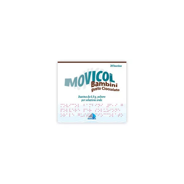 Il nome di questo medicinale è Movicol Bambini gusto Cioccolato, bustina da 6,9 g, polvere per soluzione orale. È un lassativo per il trattamento della stitichezza cronica nei bambini da 2 a 11 anni e per il trattamento della stitichezza grave (chiamata fecaloma) nei bambini da 5 a 11 anni.