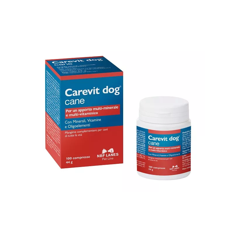 Carevit dog è un mangime complementare per cani particolarmente indicato per supportare il cane con un apporto minerale-vitaminico in caso di aumentato fabbisogno: accrescimento, gravidanza e allattamento, impegno sportivo, cane anziano.