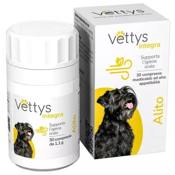 Compresse masticabili ad alta appetibilità per migliorare l'alito e favorire l'igiene orale del cane.