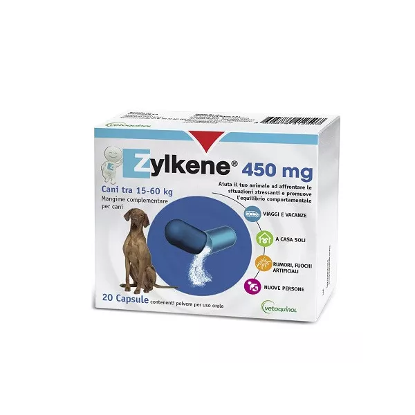 | Zylkene 450 mg | 15-30 kg: 1 capsula al giorno | 30-60 kg: 2 capsule al giorno |