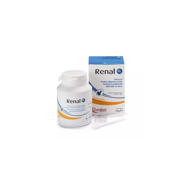 Renal N apporta fruttoligosaccaridi, polifenoli dell'olio di oliva, Enterococcus faecium e vitamine che favoriscono il mantenimento del normale metabolismo e di una idonea funzionalità intestinale.