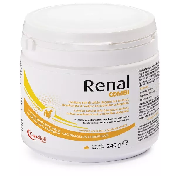 Descrizione Per cani e gatti adulti. Renal COMBI apporta carbonato di calcio, gluconato di lattato di calcio, chitosano, bicarbonato di sodio.
