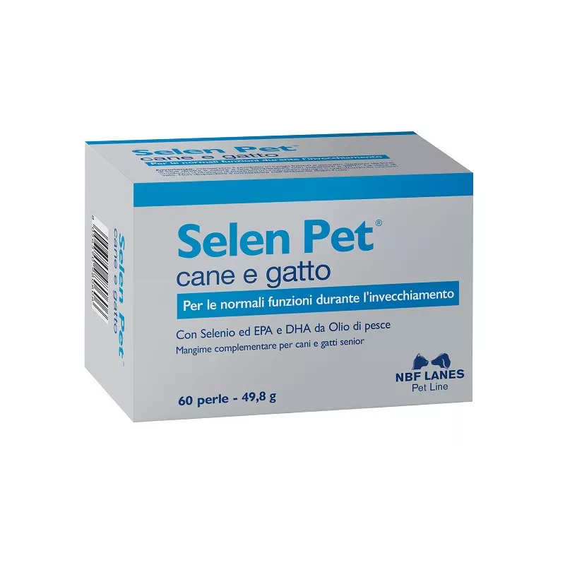 Selen Pet è un mangime complementare contenente principi nutrizionali (acidi grassi omega 3, selenio) utili per il normale invecchiamento del cane e del gatto.
