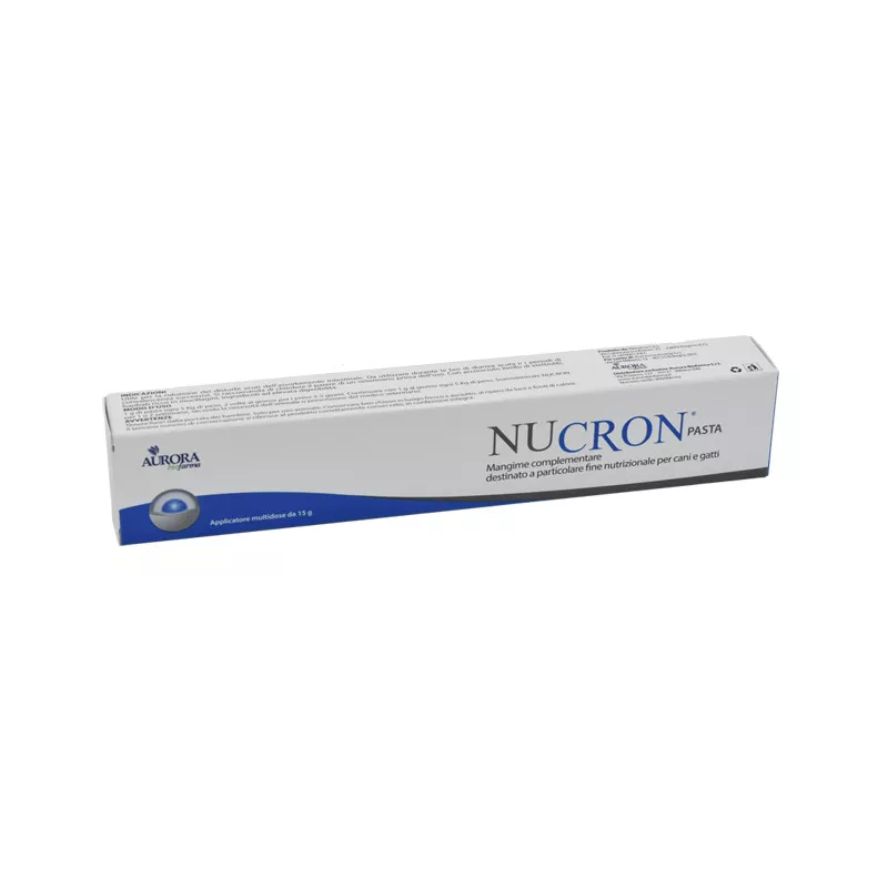 1 g di pasta ogni 5 kg di peso, 2 volte al giorno per i primi 3-5 giorni. Continuare con 1 g al giorno ogni 5 kg di peso. Somministrare Nucron per 1 o 2 settimane, secondo la necessità dell'animale o prescizione del medico veterinario.