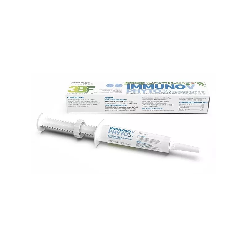 Modalità d'uso Aggiungere IMMUNOV PHYTO PASTA al pasto principale oppure deporre su denti o sulla lingua dell'animale.