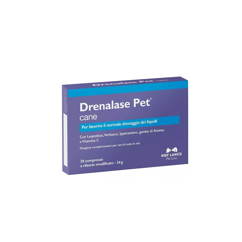 Descrizione Per favorire il normale drenaggio dei liquidi interstiziali. Mangime complementare per cani di tutte le età con lespedeza, verbasco, ippocastano, gambo di ananas e vitamina C.