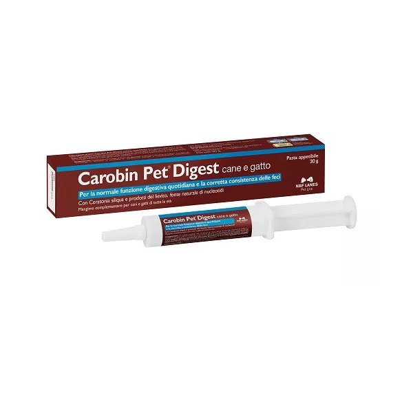 Descrizione Carobin Pet Digest pasta appetibile può essere utile in tutte le condizioni di cattiva digestione del cane e del gatto conseguenti a cambiamenti alimentari e stress ambientali che comportano disturbi quali: alitosi, coprofagia, flatulenze, borborigmi, scarsa consistenza delle feci. Il miglioramento della qualità delle feci comporta una maggiore igiene della zona perianale che aiuta a contrastare i problemi delle ghiandole annesse che creano fastidio e prurito.