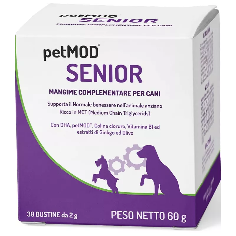 Descrizione Mangime complementare in forma liquida appetibile per cani, formulato ad alto contenuto in MCT (trigliceridi a media catena) ed olio di pesce: con DHA, I-CARE, PETMOD, colina cloruro, vitamina B1 ed estratti di ginkgo ed olivo per favorire il normale benessere dell'animale anziano.