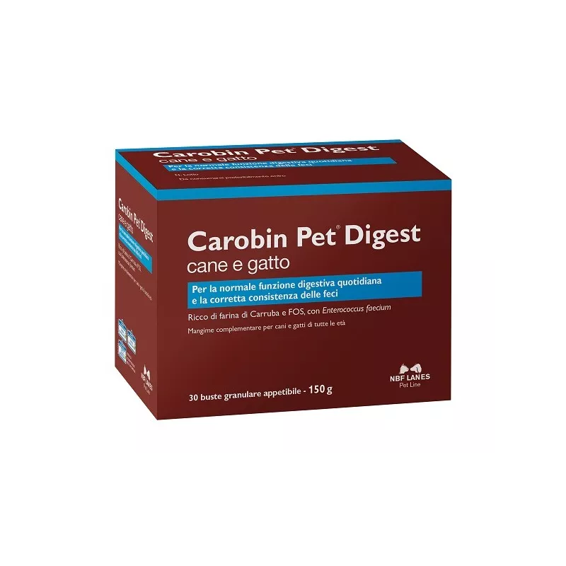 Mangime complementare. Carobin Pet Digest granulare appetibile può essere utile per il mantenimento della normale funzionalità digestiva di cani e gatti di tutte le età in caso di: alitosi, coprofagia, flatulenze, borborigmi, scarsa consistenza delle feci. Il miglioramento della qualità delle feci comporta una maggiore igiene della zona perianale che favorisce la normale funzione delle ghiandole annesse.