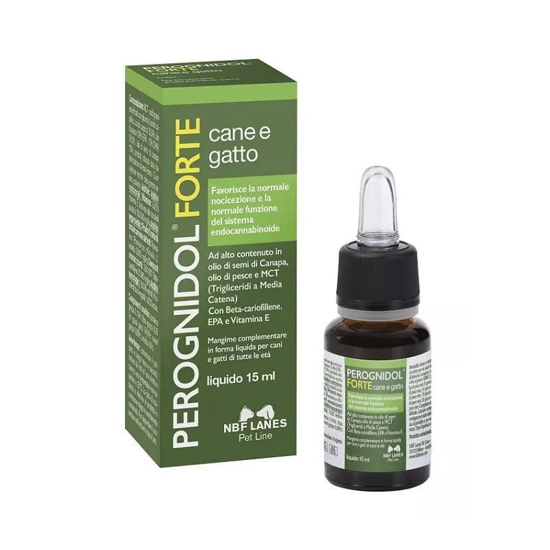 Il fitocomplesso presente nell'alto contenuto in olio di canapa, in combinazione con EPA da olio di pesce e vitamina E, favoriscono la normale funzione nocicettiva nell'animale. Perognidol Forte, che contiene beta-cariofillene, è stato appositamente formulato per favorire la normale funzione del sistema endocannabinoide nell'animale.