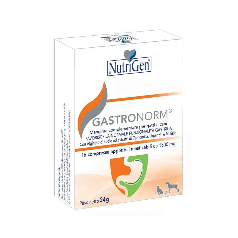 Descrizione Mangime complementare per gatti e cani formulato in compresse appetibili masticabili con alginato di sodio ed estratti di camomilla, liquirizia e melissa per favorire la normale funzione del tratto gastrointestinale superiore.