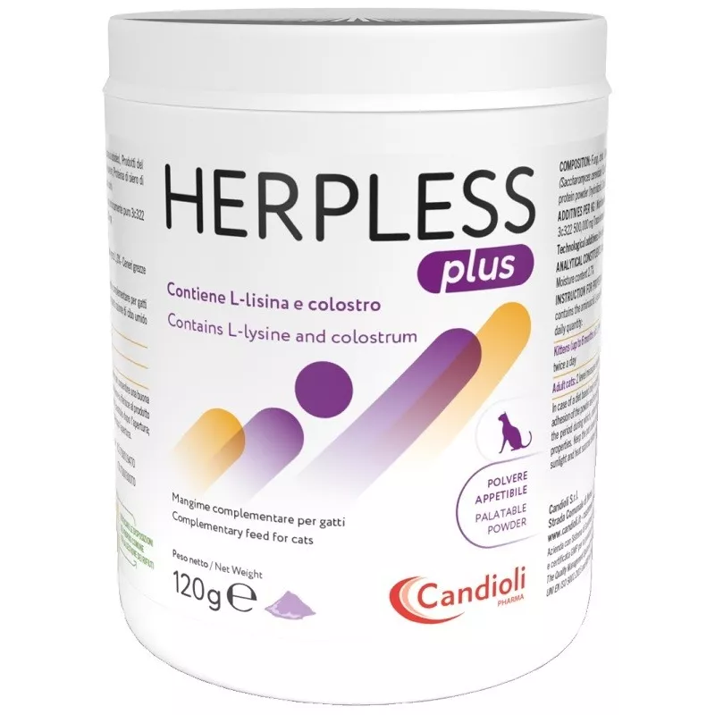 Miscelare HERPLESS plus polvere alla consueta razione di cibo umido secondo la seguente razione giornaliera: