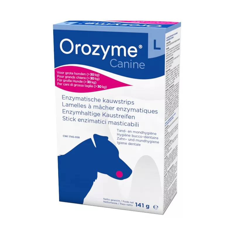 Si consiglia di somministrare uno stick masticabile al cane tutte le sere dopo l’ultimo pasto e di spazzolarne tutti i giorni i denti con il dentifricio Orozyme Canine. In ogni caso, per quanto riguarda l’igiene dentale del cane, seguire i consigli del veterinario.
