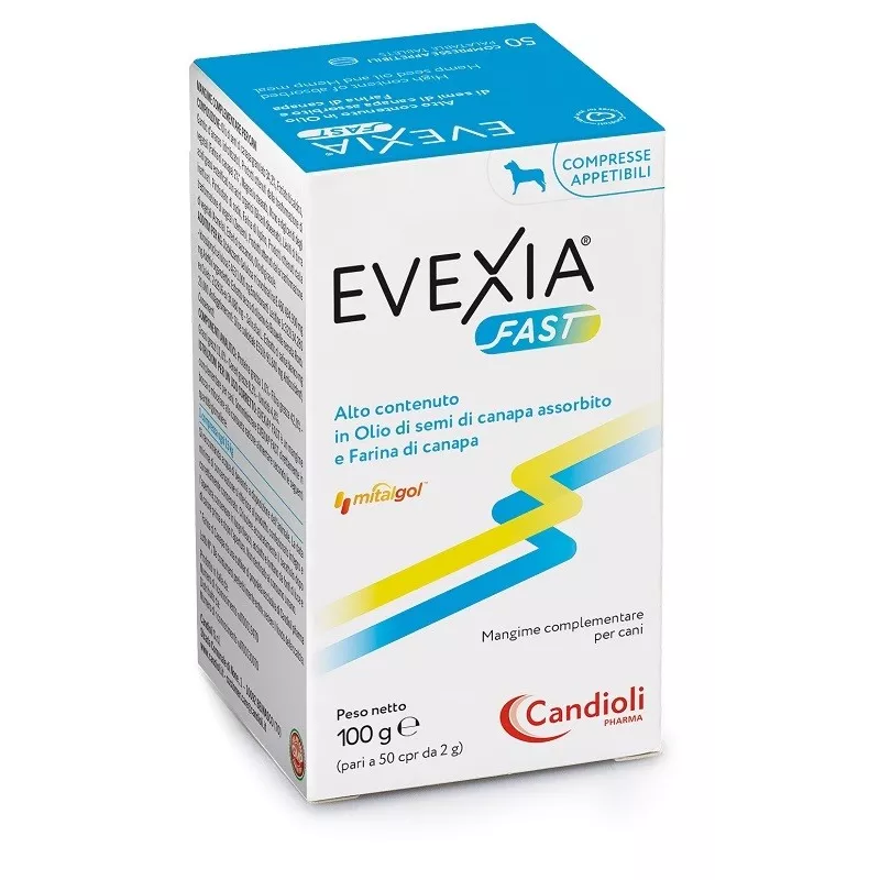 Somministrare EXEVIA FAST direttamente in bocca o miscelare alla consueta razione alimentare secondo le seguenti quantità giornaliere: 1 compressa ogni 15 kg.