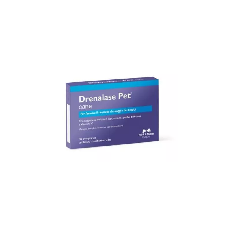 Mangime complementare per cani in compresse appetibili non divisibili a rilascio modificato, formulato con ananas, ippocastano, verbasco, lespedeza e vitamina C, per favorire il normale drenaggio dei liquidi interstiziali.