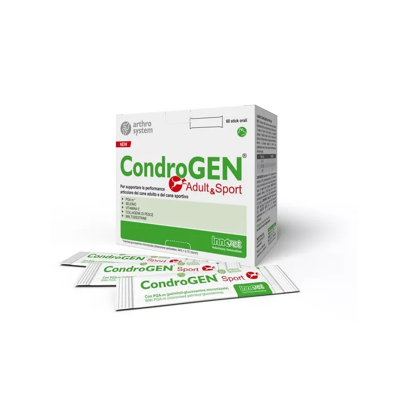 Descrizione La formula esclusiva di Condrogen Adult & Sport nutre e protegge tutte le strutture articolari (cartilagine, muscoli, tendini e legamenti), stimolandone il metabolismo energetico.