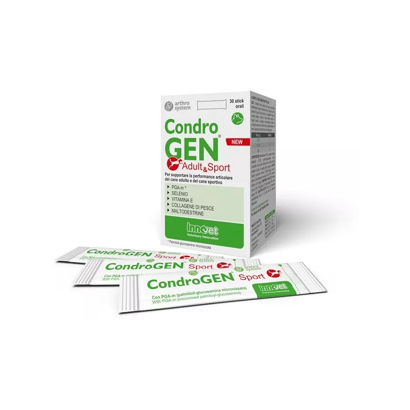 Descrizione La formula esclusiva di Condrogen Adult & Sport nutre e protegge tutte le strutture articolari (cartilagine, muscoli, tendini e legamenti), stimolandone il metabolismo energetico.