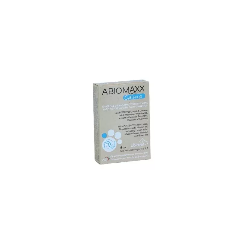 Mangime complementare per cani e gatti formulato con PEPTIDYSS, semi di canapa, sali di magnesio, vitamina B6 ed estratti di melissa, passiflora, valeriana e the verde per favorire un fisiologico stato di calma nell'animale.