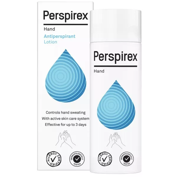 Perspirex Lozione mani è dermatologicamente testata e contiene un ingrediente attivo che fornisce una protezione efficace contro la sudorazione delle mani. Perspirex Lozione mani contribuisce a ridurre notevolmente la sudorazione fino a 3 giorni mentre il sistema skin care migliora il benessere della pelle.