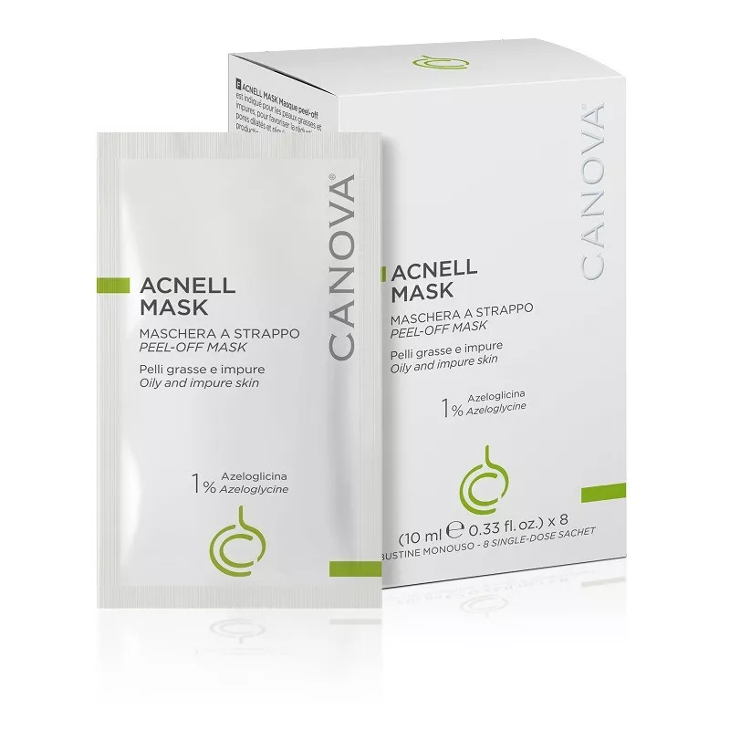 Maschera a strappo. È un trattamento complementare indicato in caso di pelli grasse e impure, per favorire la riduzione dei pori dilatati e regolarizzare la iperproduzione di sebo. Favorisce inoltre un’azione restituiva e lenitiva in caso di pelli stressate da trattamenti farmacologici. È a base di azeloglicina all’1% e di un complesso di attivi vegetali con proprietà antisettiche e sebo normalizzanti e acido ialuronico per un’azione idratante e restitutiva.