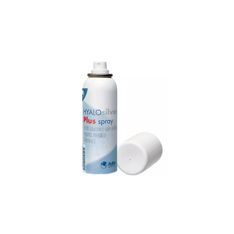 Trattamento delle lesioni cutanee non infette (es. abrasioni, escoriazioni, fissurazioni, tagli, piccole ferite chirurgiche, scottature localizzate di primo e secondo grado), nel piede diabetico, nel piede d'atleta e nelle lesioni da decubito. Hyalosilver Plus Spray è una sospensione spray per uso topico contenente acido ialuronico (HA), argento metallico e vitamina E. L'acido ialuronico e l'argento sono uniti in una matrice (caolino e amido) con proprietà assorbenti. L'assorbimento degli essudati crea un ambiente che facilita il naturale processo di rigenerazione tissutale formando, insieme all'HA e argento, una barriera protettiva contro la penetrazione microbica. L'azione filmogena della vitamina E, coadiuvando il processo di riepitelizzazione, favorisce il ripristino delle condizioni ottimali di idratazione della cute.