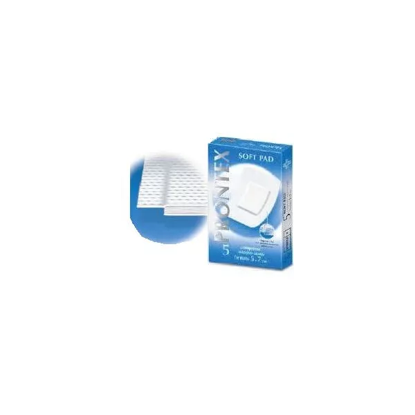 Dispositivo medico CE. Compresse adesive con tampone assorbente. Medicazione ipoallergenica sterile in morbido tessuto non tessuto. Traspirante per un'ottimale condizione del microambiente della ferita. Assoluta sagomabilità del prodotto per adattarsi a tutte le parti anatomiche del paziente.