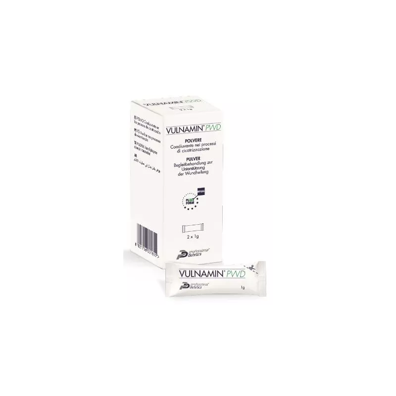 È controindicato in caso di ipersensibilità accertata verso i componenti. Non disperdere nell’ambiente. È controindicato in caso di infezione franca. Non sono noti fenomeni di sovradosaggio. Non sono noti effetti collaterali. Non sono note interazioni con farmaci e sostanze medicinali. Sebbene non siano noti effetti secondari in caso di gravidanza e allattamento è opportuno effettuare l’applicazione solo secondo il giudizio del medico. Vulnamin PWD è un prodotto caratterizzato da buona tollerabilità; tuttavia raramente possono verificarsi reazioni di tipo locale, dovute a fenomeni di ipersensibilizzazione, destinate a risolversi spontaneamente. Si suggerisce comunque di consultare il medico in caso di contestuali trattamenti farmacologici e/o per un utilizzo protratto oltre le sei settimane.