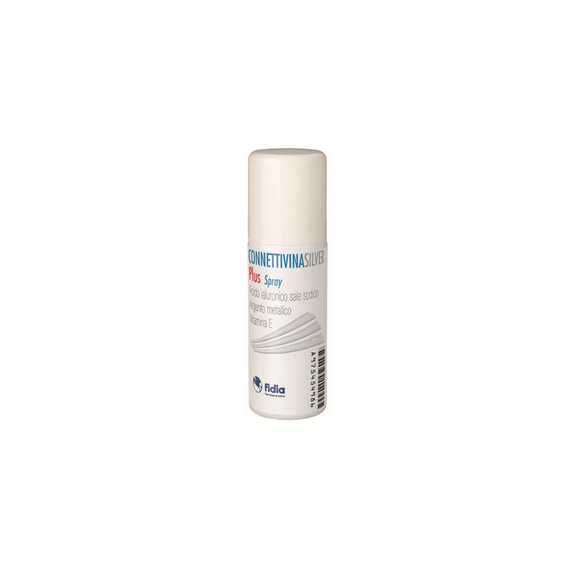 CONNETTIVINASILVER PLUS SPRAY è una sospensione spray per uso topico contenente acido ialuronico (HA), argento metallico e vitamina E.