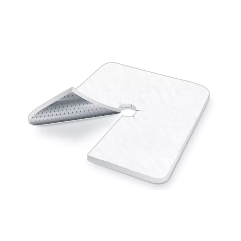 Compressa morbida e assorbente, provvista di un foro variabile a mezzo di tagli radiali intorno ad esso.