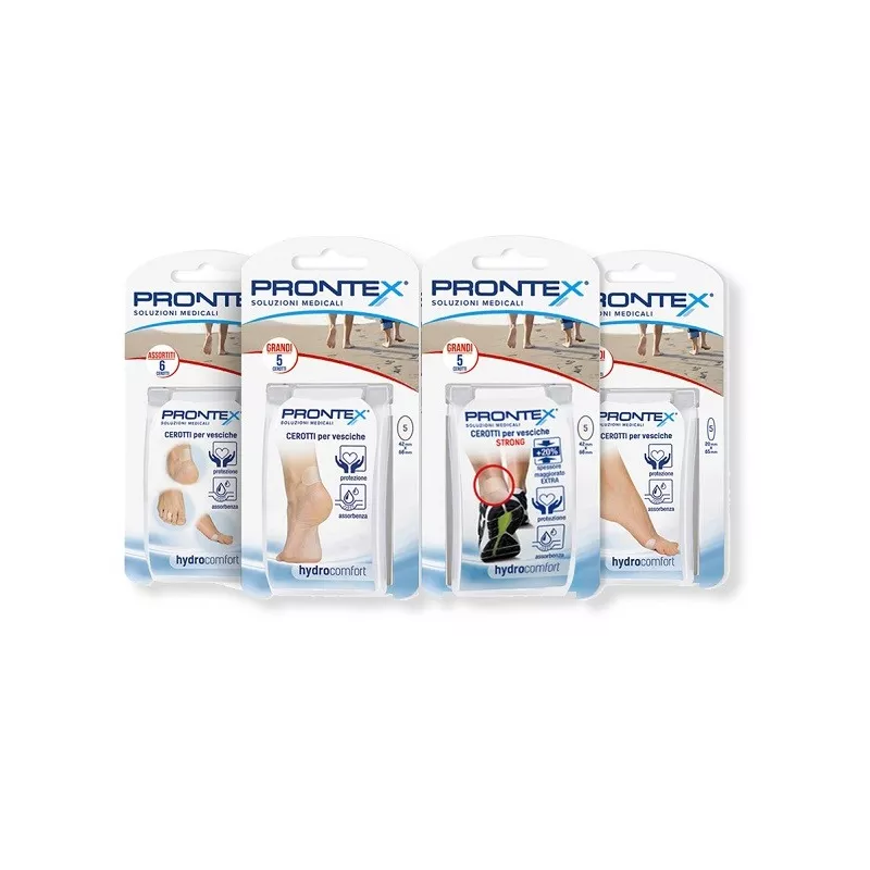 Scopri la soluzione avanzata per la cura delle ferite con i cerotti protettivi Prontex, specialmente progettati per vesciche ed escoriazioni. Disponibili in quattro varianti, tra cui Assortiti, Grande, Medio e Strong, questi cerotti con gel idrocolloidale offrono un livello superiore di protezione e cura.